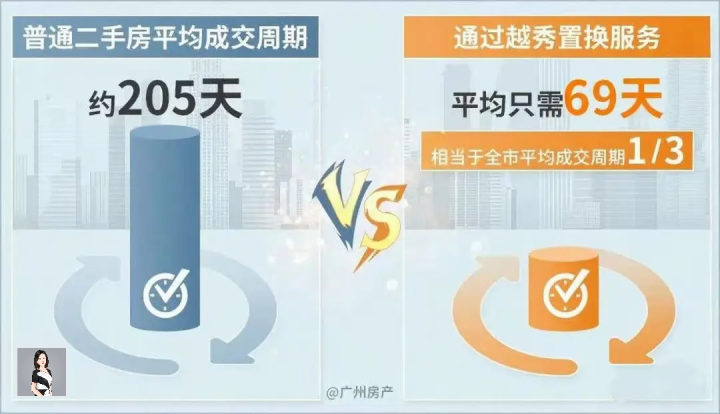 更值得关注的是,越秀平台数据显示:过往服务案例中,存量房平均出售周期仅69天,效率达某头部平台的7倍;租赁房源平均空置期缩短至15天,租金溢价率超10%。